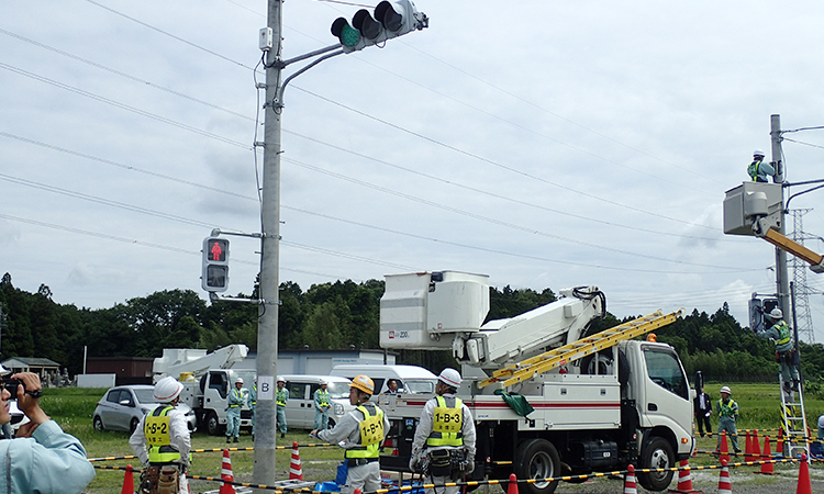 交通信号工事甲子園 全国の交通信号工事士が技術を競うことにより、実技の向上、新技術の習得、新人教育の実施などを図ります。